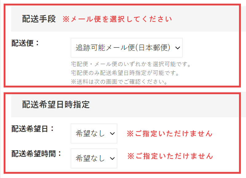 *ご利用条件を満たしたご注文の場合のみ、メール便の選択が表示されます。