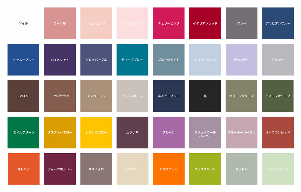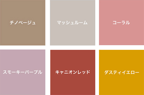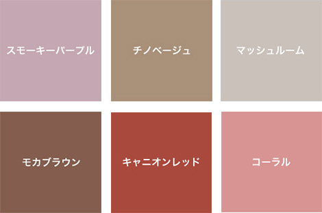 色差の数値において透けにくい好成績となった、?「スモーキーパープル」「コーラル」「マッシュルーム」「キャニオンレッド」「モカブラウン」「チノベージュ」などは、官能検査においても「透けていない」との回答が多く、下着として着用した際に透けにくい色であることが分かりました。