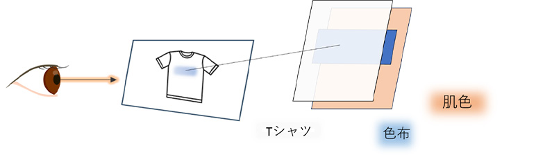 この研究では、機器測定による色差の算出、感覚的な透け感を被験者に18名に評価してもらう官能検査により40色を比較。