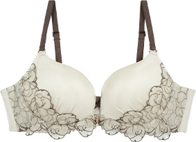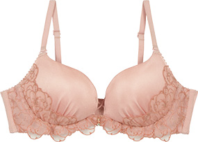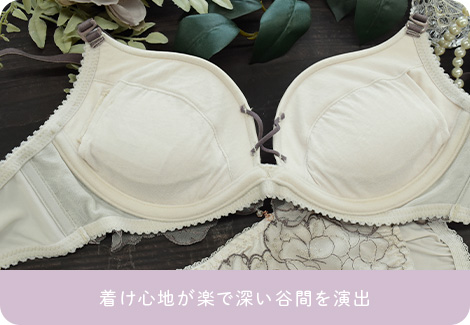 ダブルパッドでボリュームUP&谷間をメイク圧迫感の少ない着け心地&寄せた谷間を綺麗に魅せる低い前中心