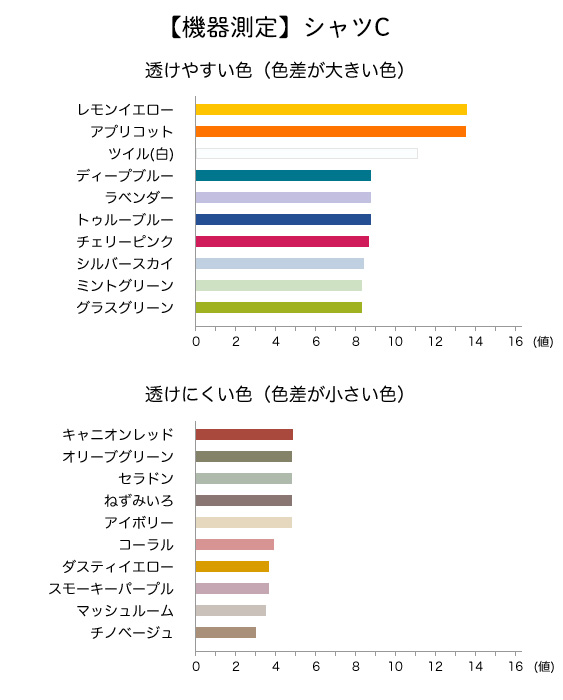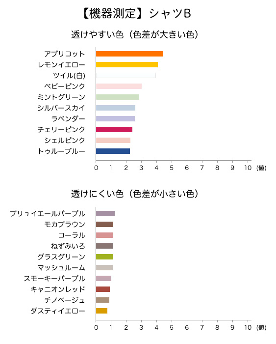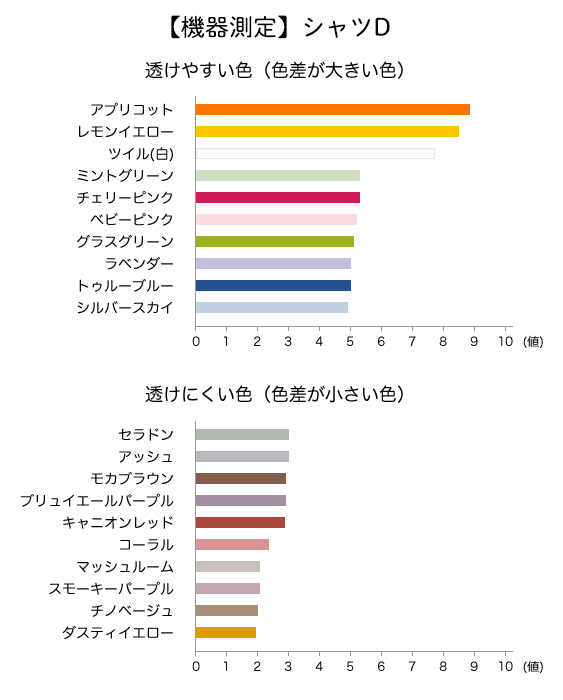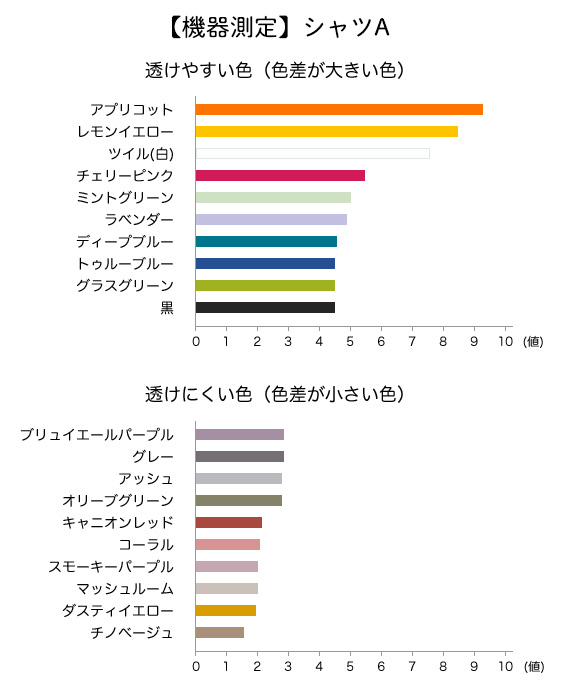 不思議なことに、透けやすい色と透けにくい色に同じ色がランクインしていますね!