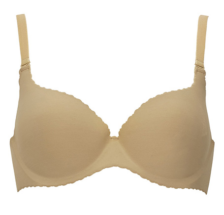 お洋服に響きにくい、縫い目のないつるんとしたカップ。どんな服にも合わせやすい!なみなみカットが肌に馴染んでピッタリフィット!
