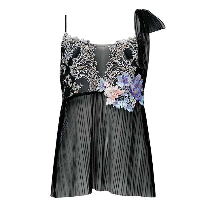 <店舗限定商品> アンデルセン童話の「おやゆび姫」の世界を描いた、限定発売コレクション。 オンプリント手法で描いたチューリップや可憐な花々は、みずみずしい息づき。 コーディネイトすると、蝶のアップリケと物語を奏でるよう計算しています。 豪華なスリップやスカーフ付きのキャミソールも注目です。 |
