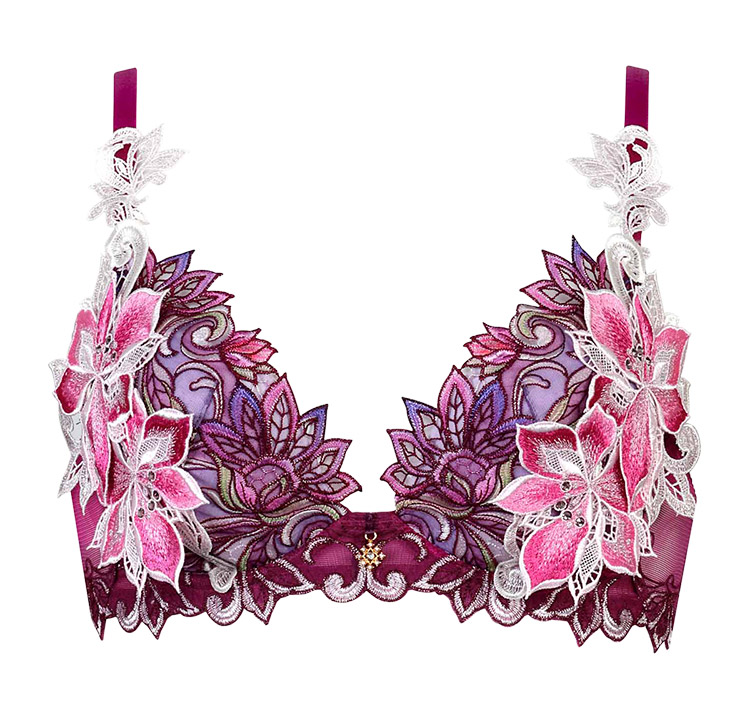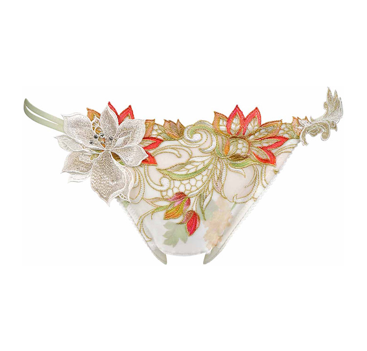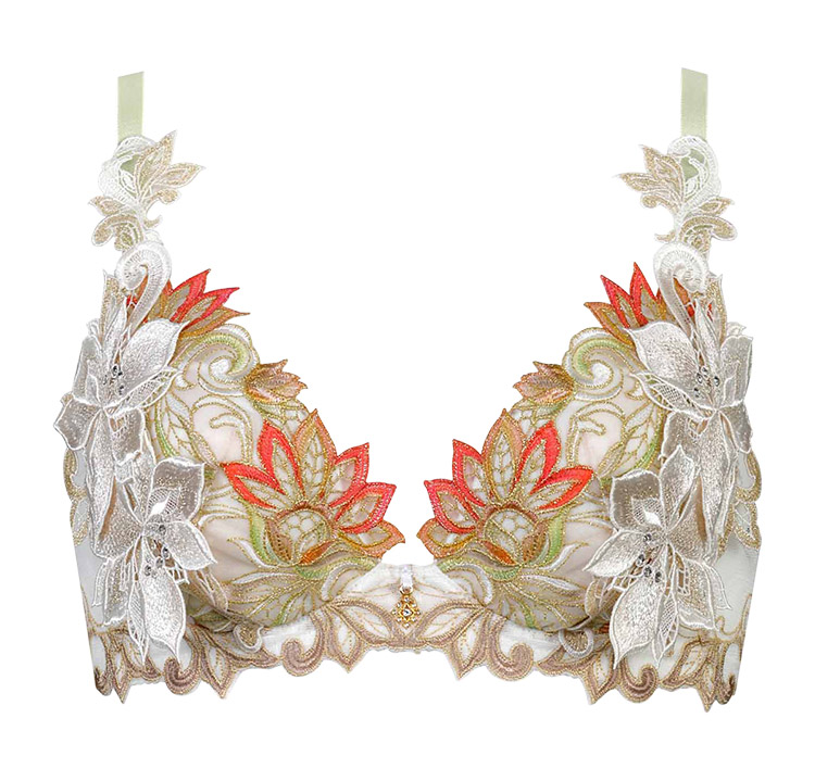 品番:BTK440 ●胸もとをすっきり、谷間はくっきり カップ上辺にカーブをつけて、すっきり魅せる胸もとにする『VIVA LINEブラ』 ・アップリケとカップのレースにはラメ糸を使用 ・カップには刺繍の柄に合わせたプリントレースを使用 ・カップのアップリケにはスワロフスキー・クリスタルを使用 ・前中心にはスワロフスキー・クリスタルチャーム付き ・アップリケはジャスミンの花をイメージ <カラー> IV、VI <サイズ> Cカップ:¥25,300(税込) D~Fカップ:¥26,180(税込) Gカップ:¥27,060(税込) <ホック> 後ろホック/ホック2段2調節 <パッド> あり(パッド受けあり) <ストラップ> 取り外し不可 |