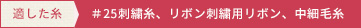 #25刺繍糸1本どり~6本どり、中細毛糸やリボン刺繍用リボンくらいの太さまで対応。