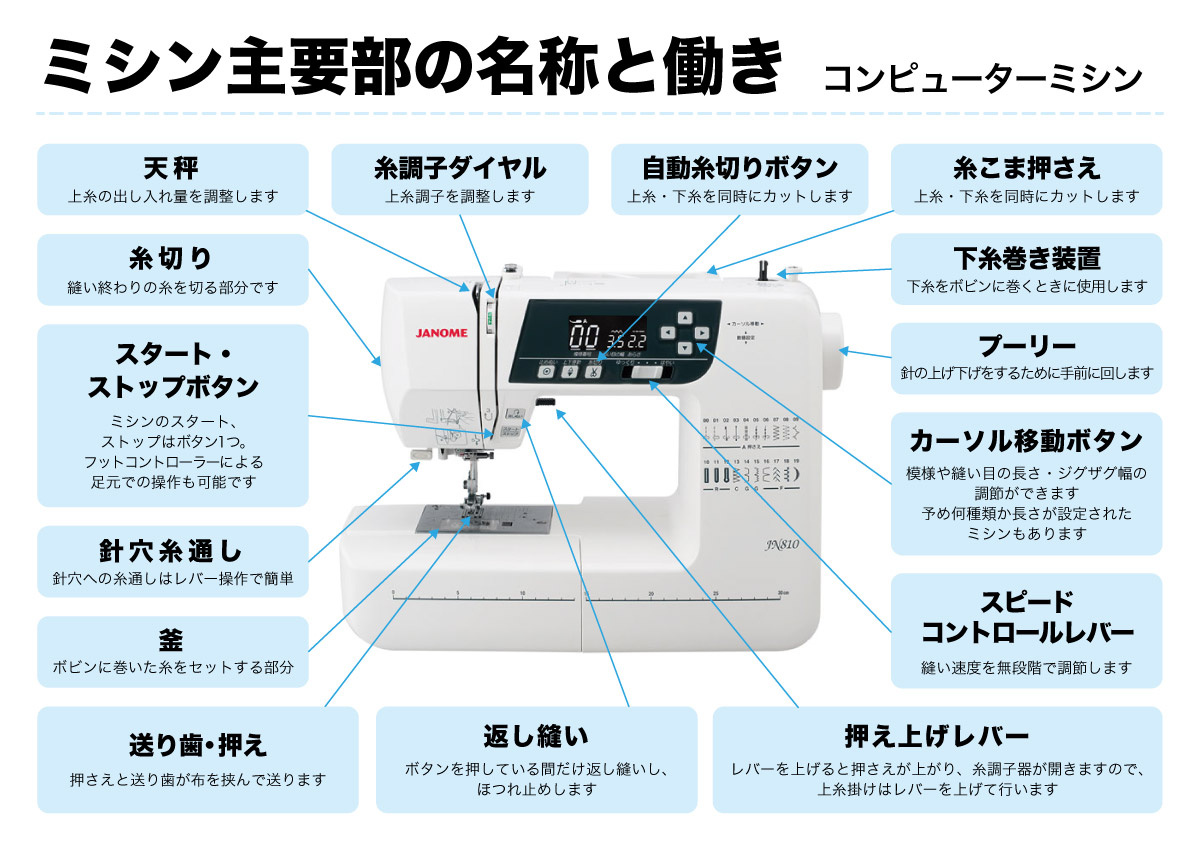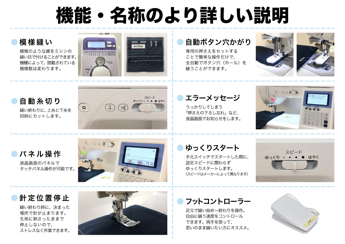 初めてミシンを購入された方はもちろん、使い慣れた方でも機種が変わると使い勝手が変わります。