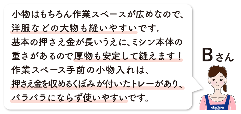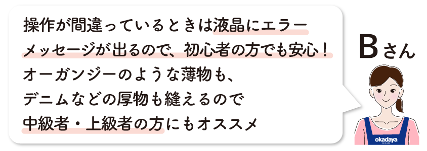 ●バランス重視の方 ●初めてミシンを使う方 |