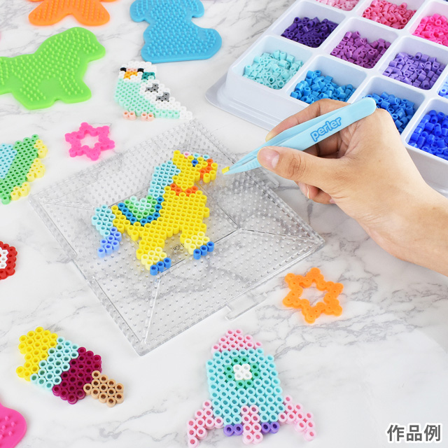 パーラービーズを乗せるだけで、簡単に好きな形が作れるプレートです。
