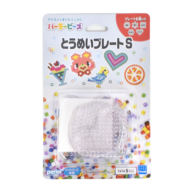 - ●内容:透明Sサイズプレート(四角形、六角形、星、ハート、丸 各1枚)×計5枚 / アイロンペーパー×1枚