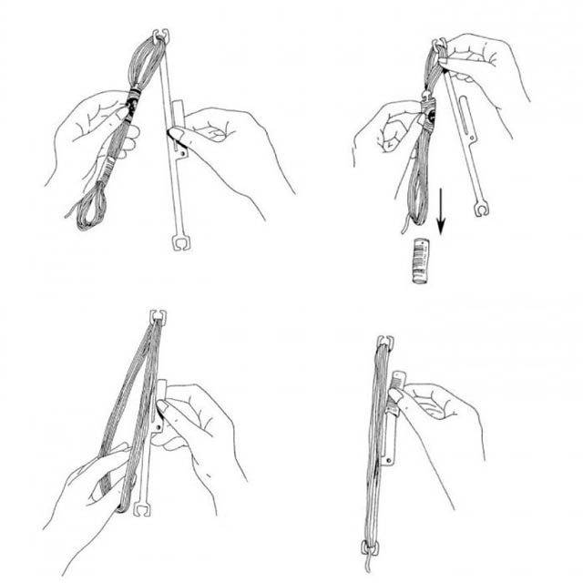 巧みに作られたステッチボウ。糸をステッチボウに収納することによって、糸が絡まず簡単に必要な長さを取り出すことが出来ます。