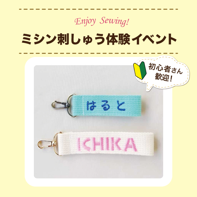 brotherの刺しゅうミシンで「ネームタグキーホルダー」にお好きな文字入れを体験いただけます♪ ※刺しゅうが出来る範囲(3cm巾×15cm) ●日程 2/21(土)・2/22(日) ●時間 各日11:00~13:00・14:00~17:00(最終受付16:30) ●開催場所:オカダヤ町田店 1F特設コーナー ●参加費:770円(税込) ●定員:入替制 ●予約:不要 <注意事項> ※体験時間はお一人様 20分程度となります。
