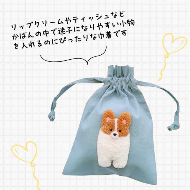 出版記念特別ワークショップとして、書籍に掲載されているコーギーのモチーフを作り、巾着に貼り付けて仕上げます。 クロバー社のフリーステッチングニードルを使って、ニードルを刺すコツ~簡単な仕立て方まで丁寧にお伝えします。 最初は布にニードルを刺す練習から始めますので初めての方もお気軽にご参加ください。 巾着のサイズ:縦…約21cm 横…約15.5cm モチーフのサイズ:縦…約8cm 横…約5cm