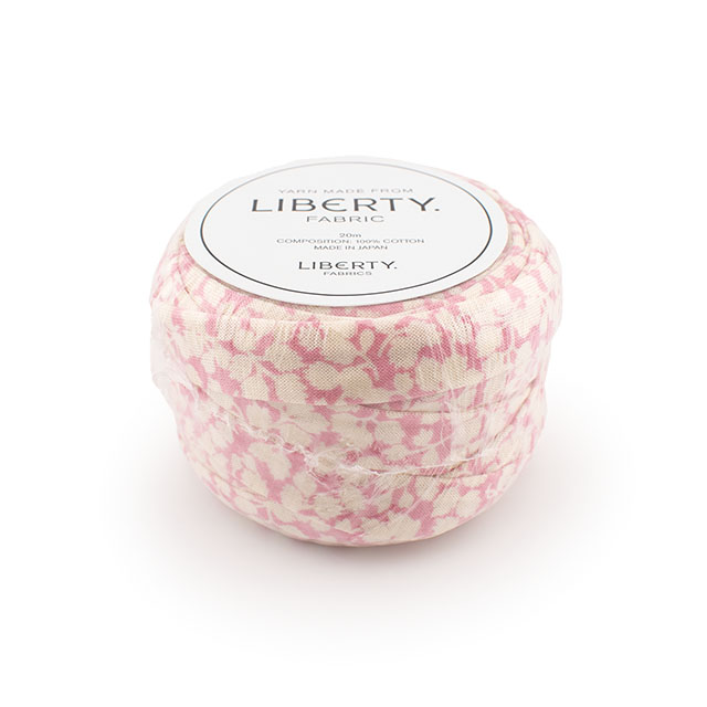 リバティ・ファブリックスのシェラトンジャージーを約3cm幅に裁断し、コットンヤーンに生まれ変わりました。