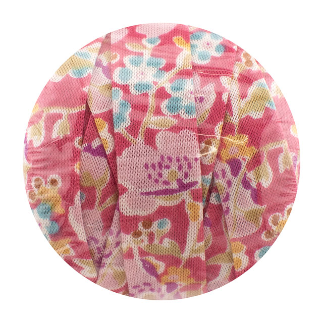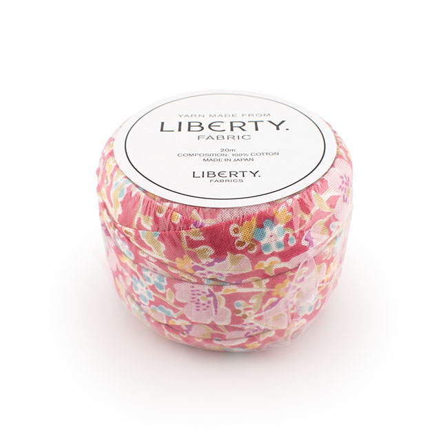 リバティ・ファブリックスのシェラトンジャージーを約3cm幅に裁断し、コットンヤーンに生まれ変わりました。