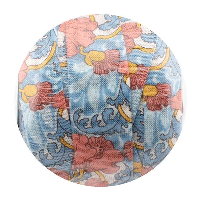 リバティ・ファブリックスのシェラトンジャージーを約3cm幅に裁断し、コットンヤーンに生まれ変わりました。