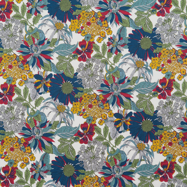 2009年春夏に登場したデザイン「Mrs.Robinson (ミセス・ロビンソン)」は、大胆な大花でありながら繊細な線画のデザインで、2009年テキスタイルのトレンドとなった柄です。