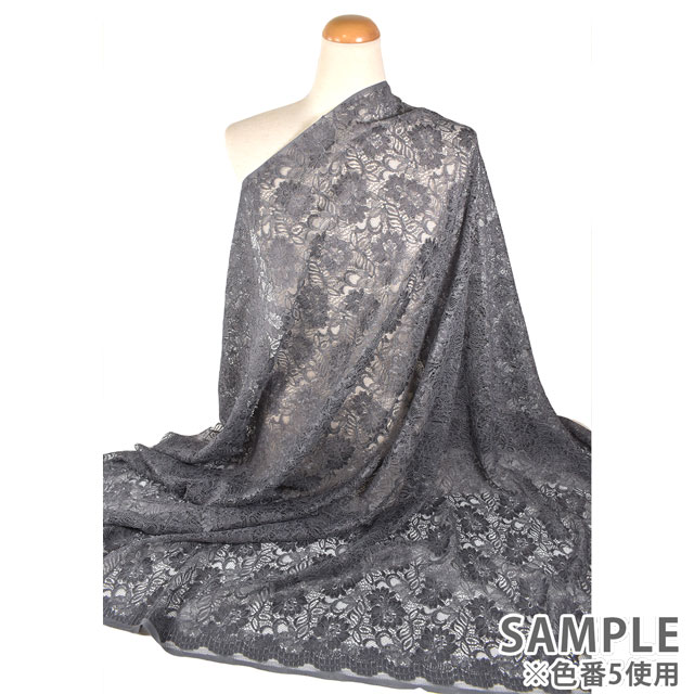 花柄のラッセルレースに細い糸で刺繍したコードレースです。