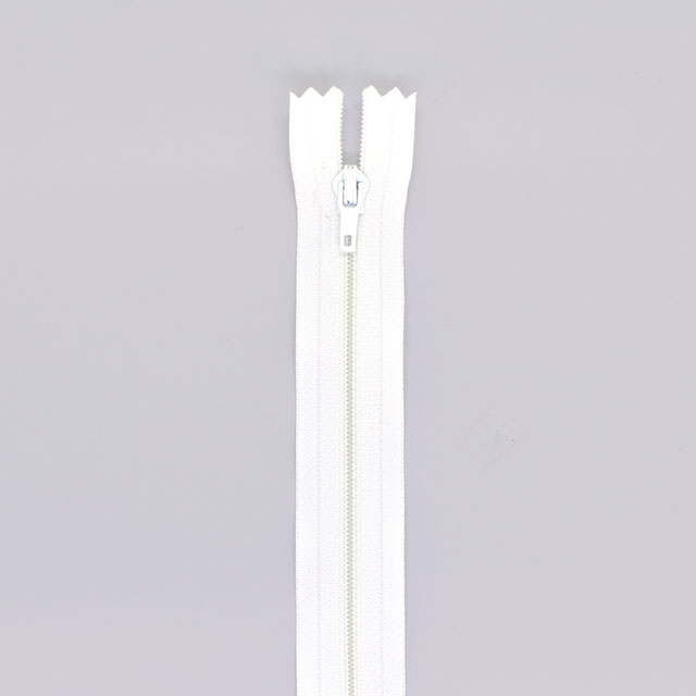 スタンダードなコイルファスナー より薄く、スラックスなどに適しています。