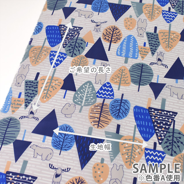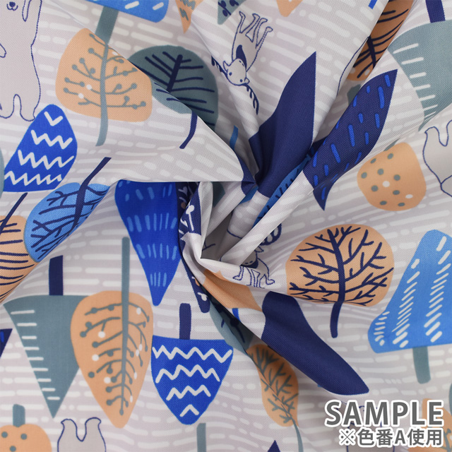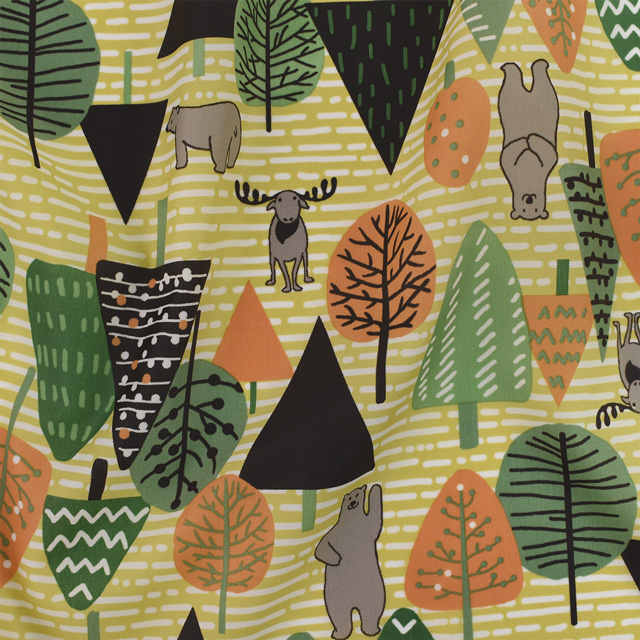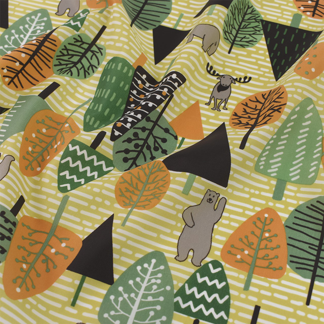 森の中で動物達とご対面、思わずご挨拶したくなるかわいいナイロンプリント生地です。