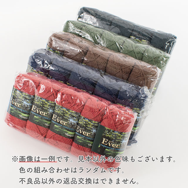 ウール100%の並太毛糸「エバー」5色セットです。