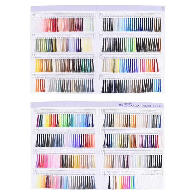 実物の糸束がついた見本帳なので、お手持ちの布地に合わせて糸を選ぶ際に役立ちます。