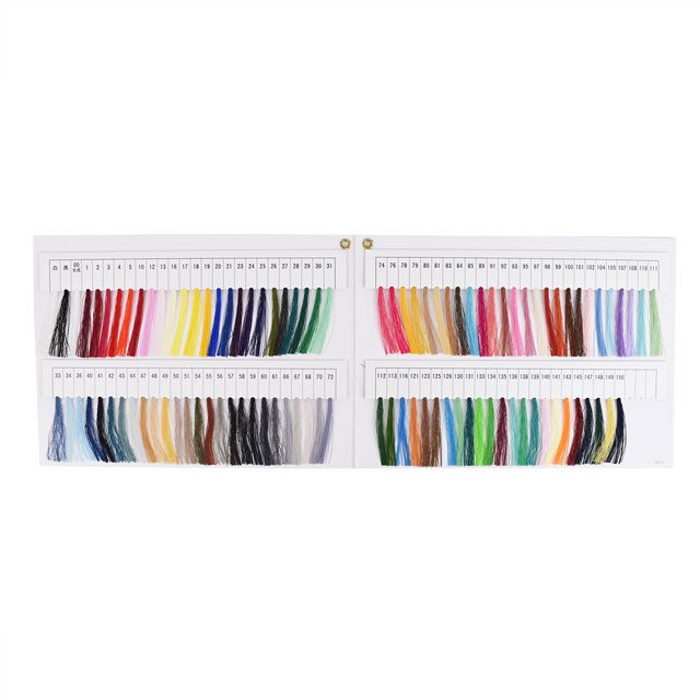 実物の糸束がついた見本帳なので、お手持ちの布地に合わせて糸を選ぶ際に役立ちます。