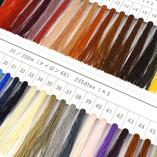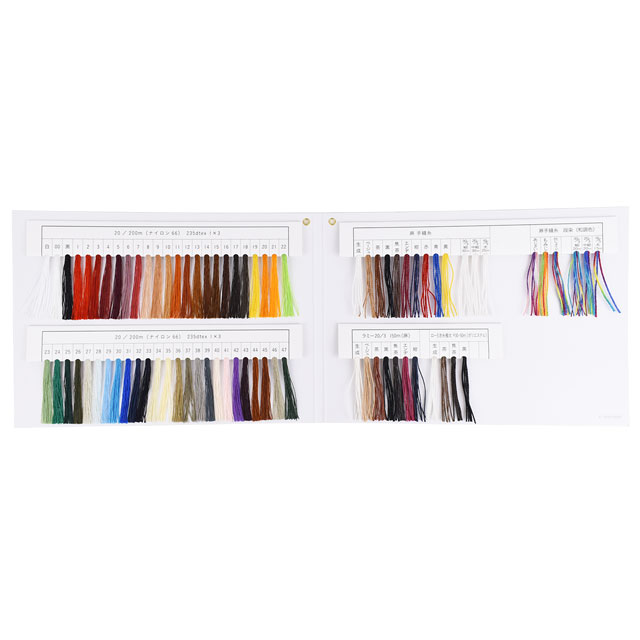 実物の糸束がついた見本帳なので、お手持ちの布地に合わせて糸を選ぶ際に役立ちます。