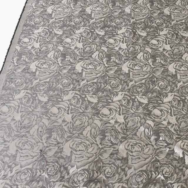 落ち着いたサテンの光沢感が特徴の総バラ柄のブロケードジャガードです。