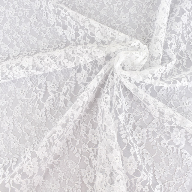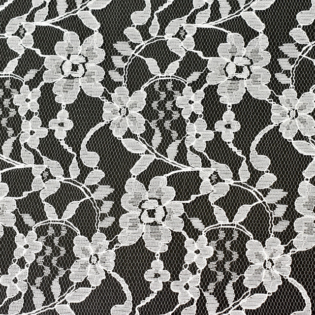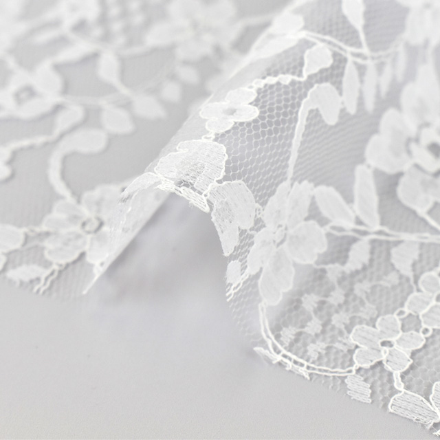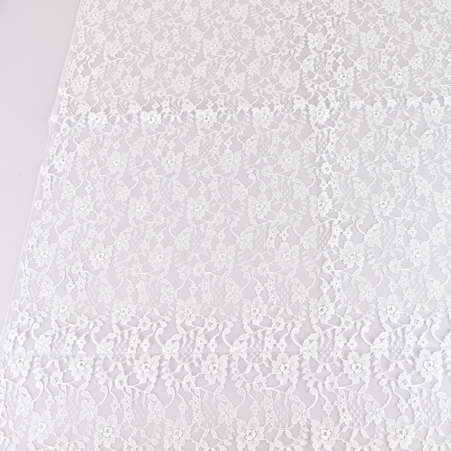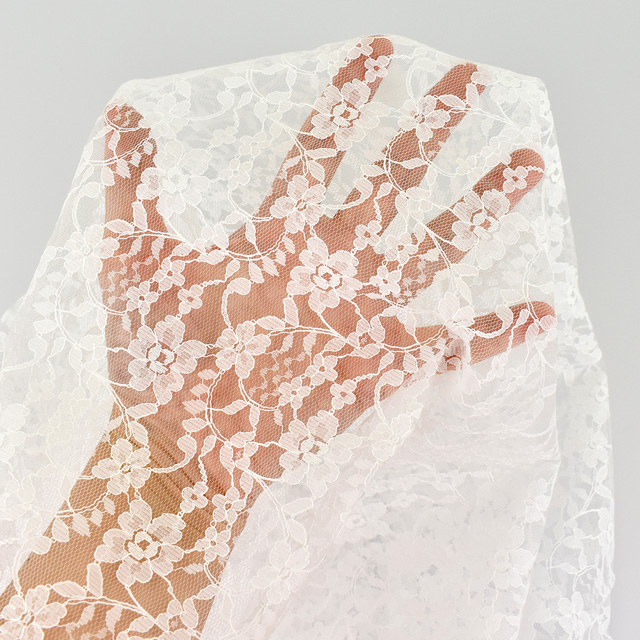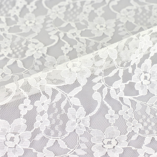 全体に花柄が刺繍されたラッセルレースです。