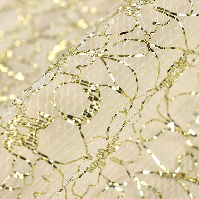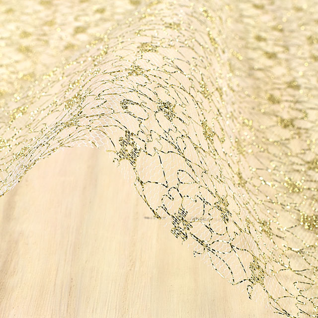 30デニールほどのチュールにラメを織り込んだ華やかな生地です。