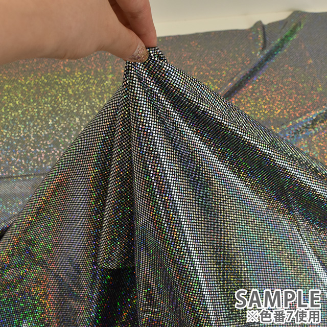 キラキラとオーロラに輝きやわらかくヨコ方向に伸縮するスムース生地です。