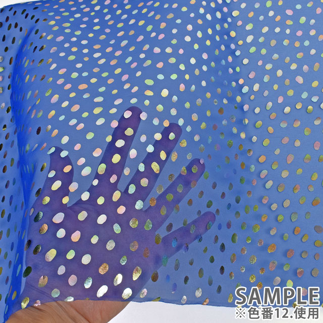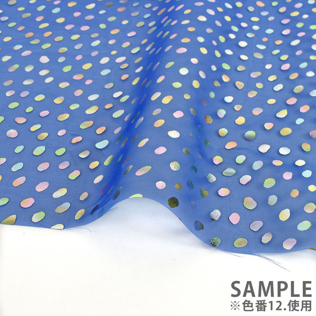 ハリのあるオーガンジーに、シルバーのオーロラ箔加工した生地です。