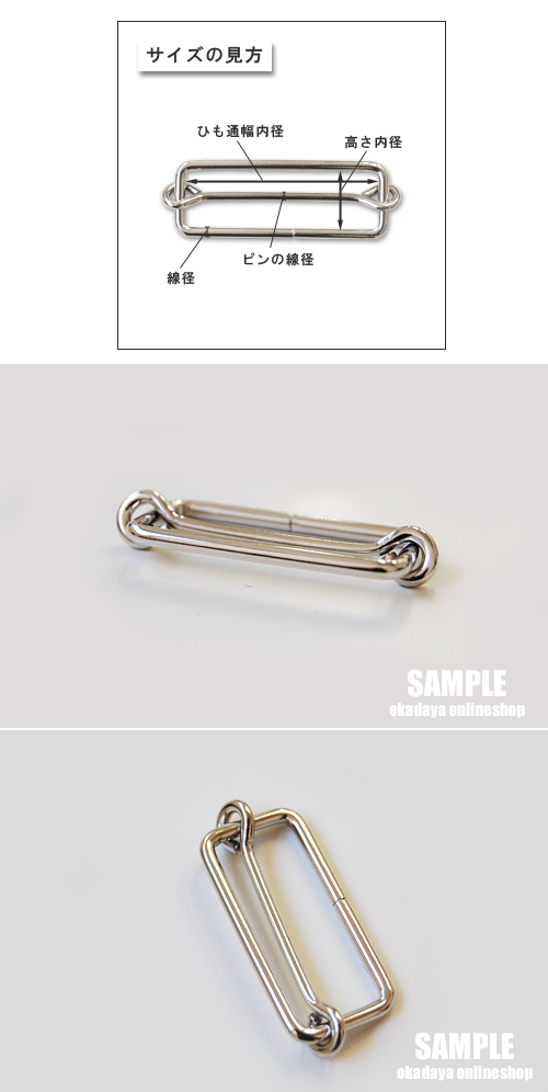 ●サイズ:通し幅内径 約20mm / 高さ内径 約13.5mm / 線径 約2.5mm(ピンの線径 約1mm)