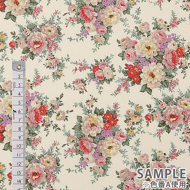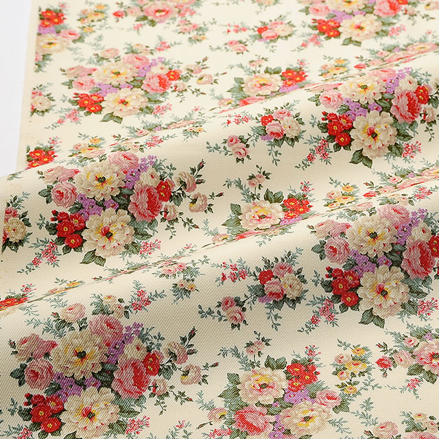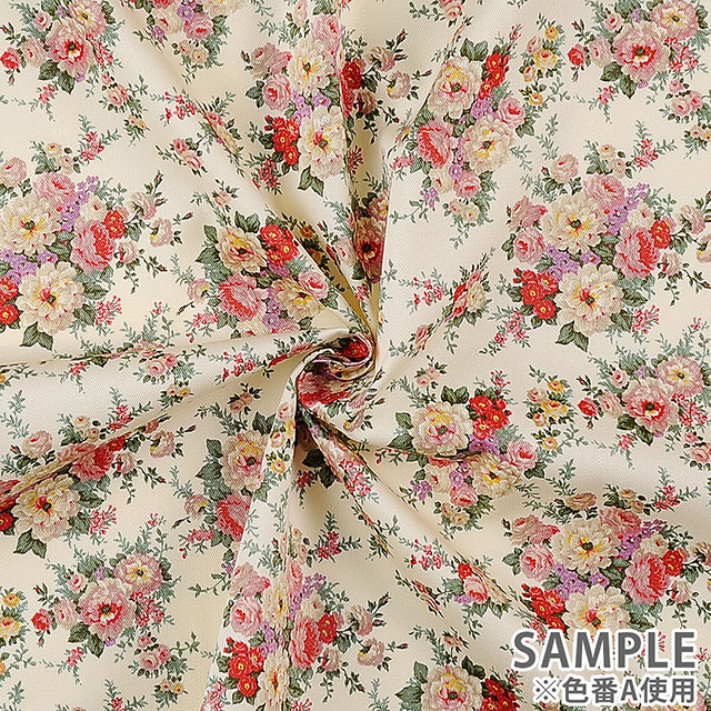 バラの模様がプリントされたツイル生地です。