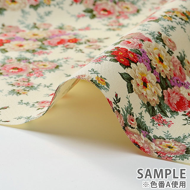 程よい厚みで、スカートや、バッグ、ポーチなどの小物づくりの他、クッションカバーなどインテリアにもおすすめの生地です。