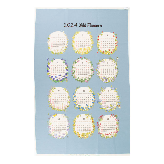 12か月の暦が、可憐な野花と一緒に描かれています。