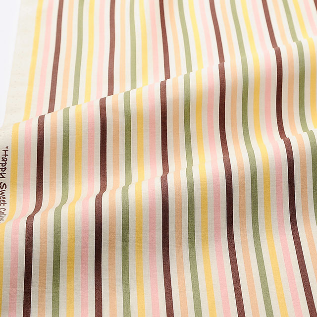 生地 ストライププリント(HS1282) マルチカラー 12.茶・グリーン・ピンク系 09Bk23_