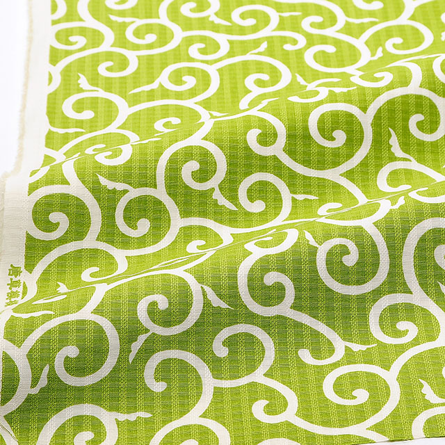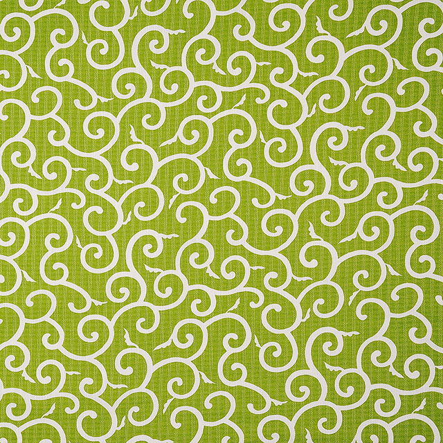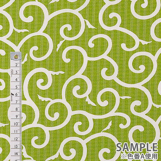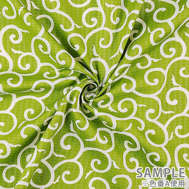 ドビー織の生地に、唐草模様がPOPな色味でプリントされたコットン素材の生地です。