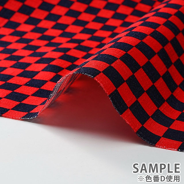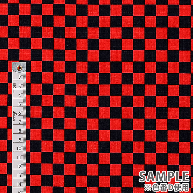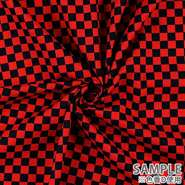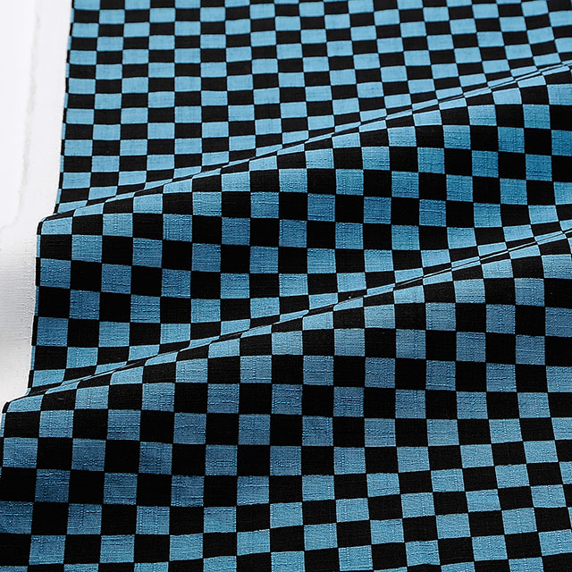 ドビー織の生地に市松模様がプリントされた和の雰囲気の感じられる生地です。