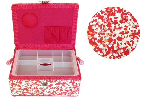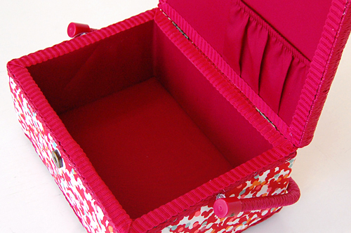 開閉部は使いやすいマグネットボタンで、ふたの内側にはピンクッションとギャザーポケット付き。
