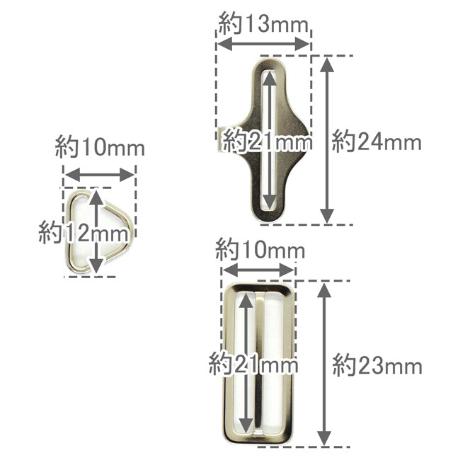 ●サイズ:引掛け・送りパーツ 21mm幅テープ用 / Dカン 10mm幅テープ用
