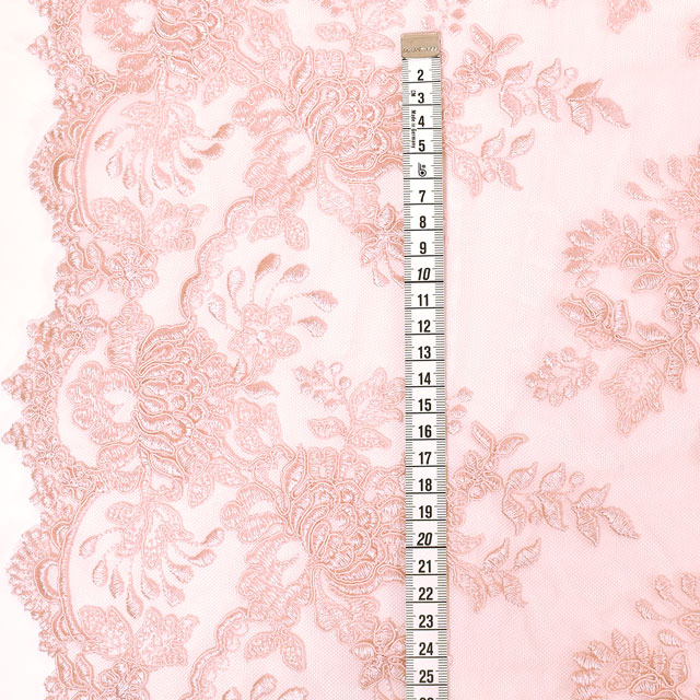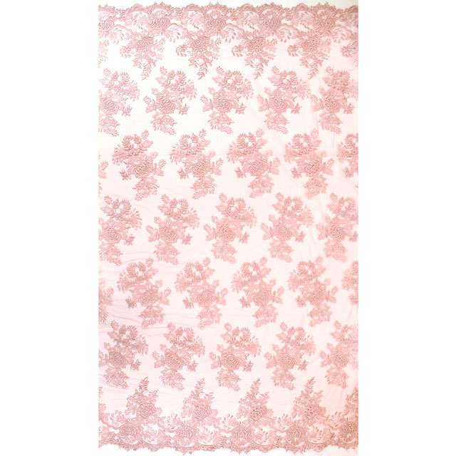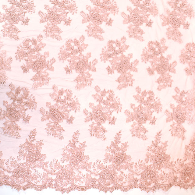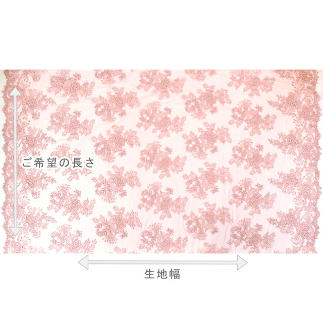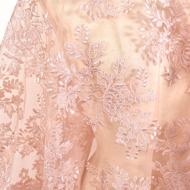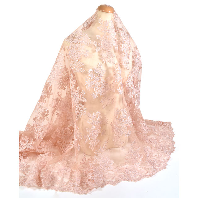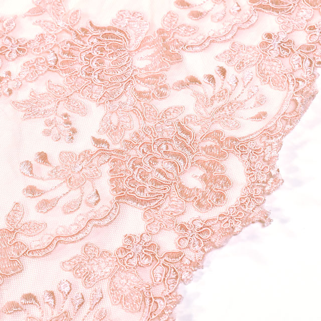 刺繍の上にコードが縫い付けられている立体感のあるレースです。