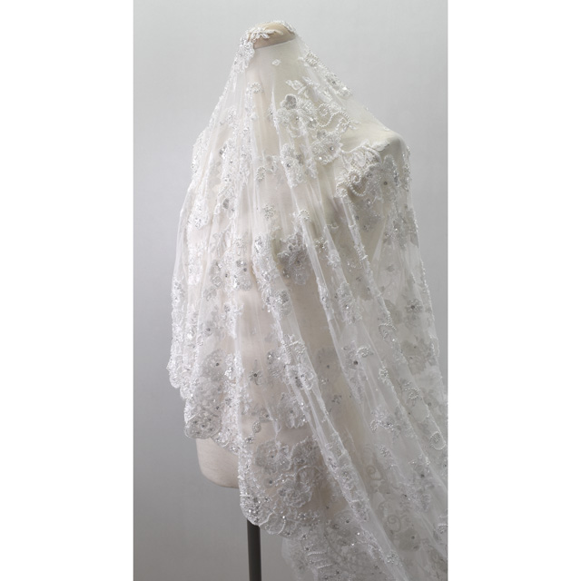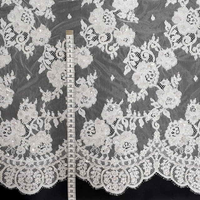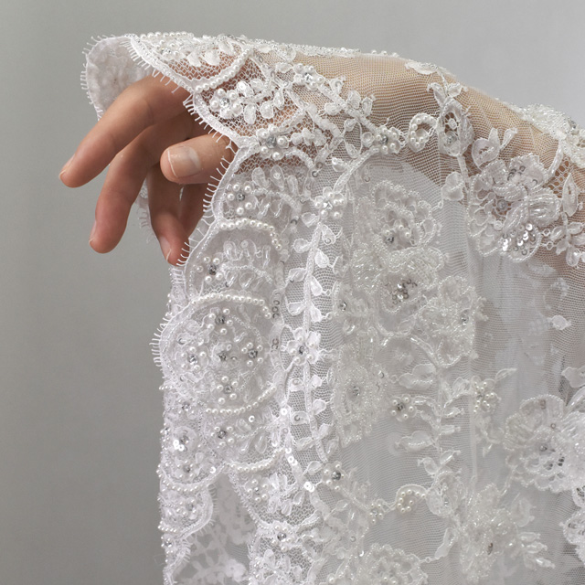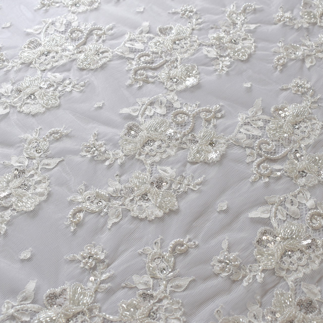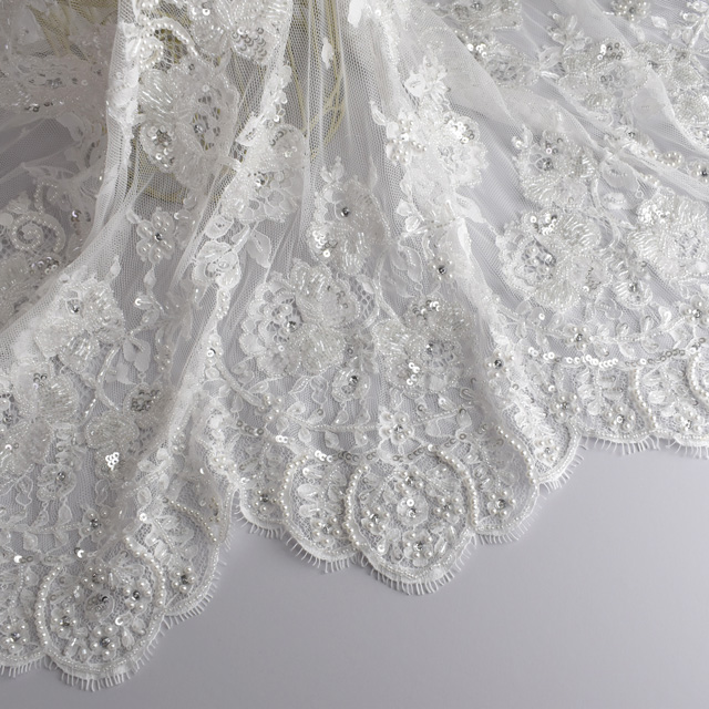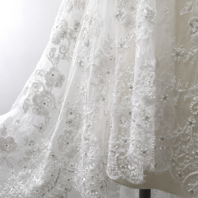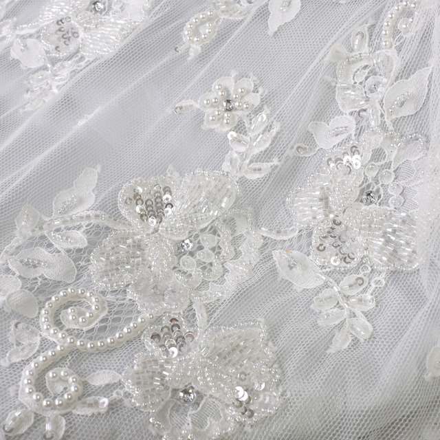 リバーレースにビーズ、スパンコール、パールで刺繍を施した繊細でラグジュアリーなレース生地です。