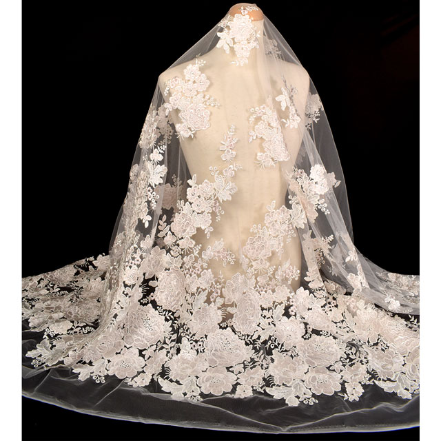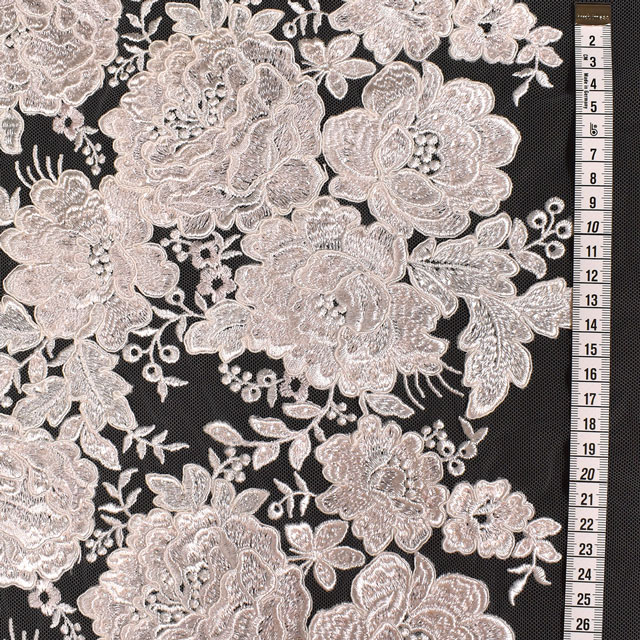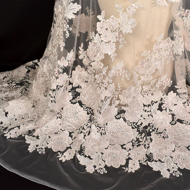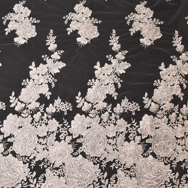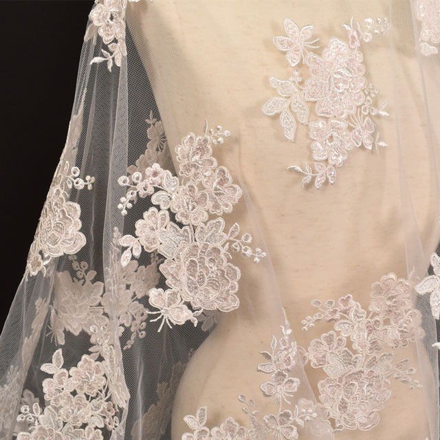 ほんのりピンクのお色が入っているビーズ刺繍レースです。