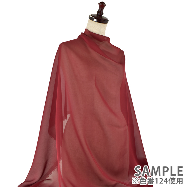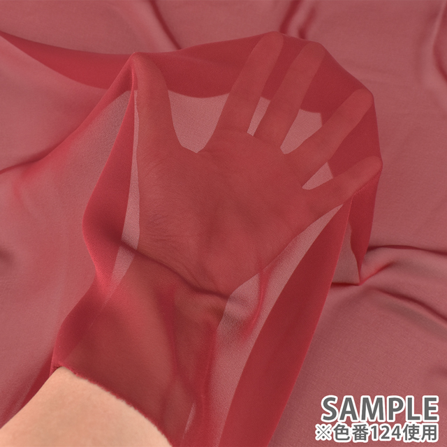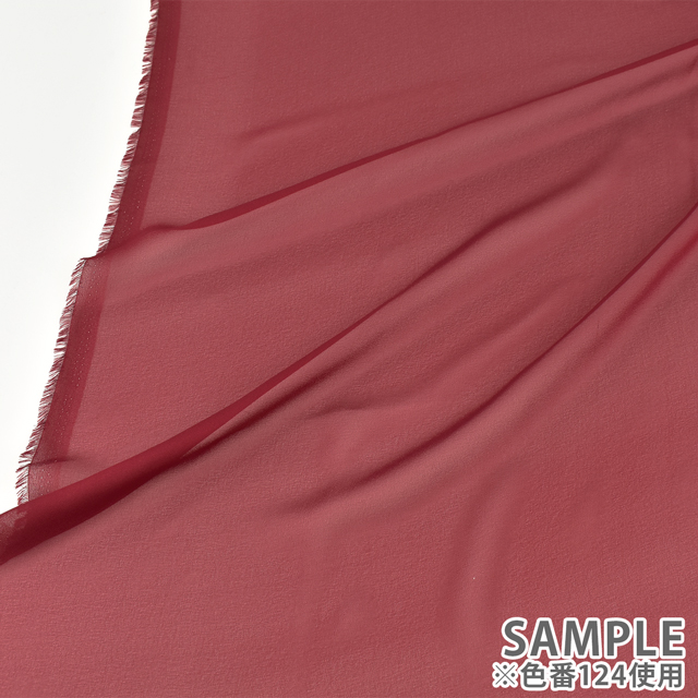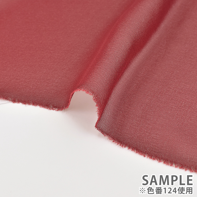 梨地組織による表面のシボが特徴の、透け感のある薄めのジョーゼット。