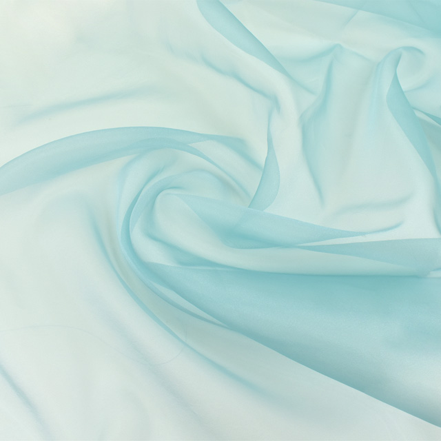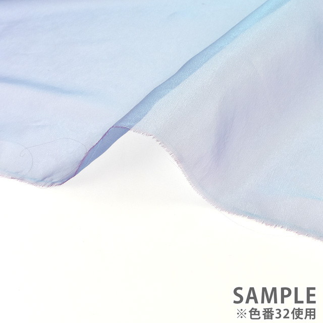 タテ糸とヨコ糸の染め分けにより見る角度によって色味が違って見えるシャンブレーのオーガンジー生地です。