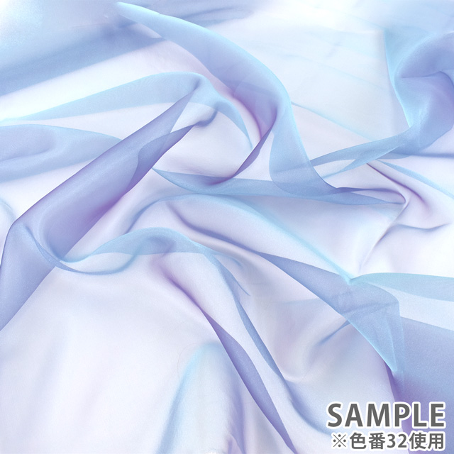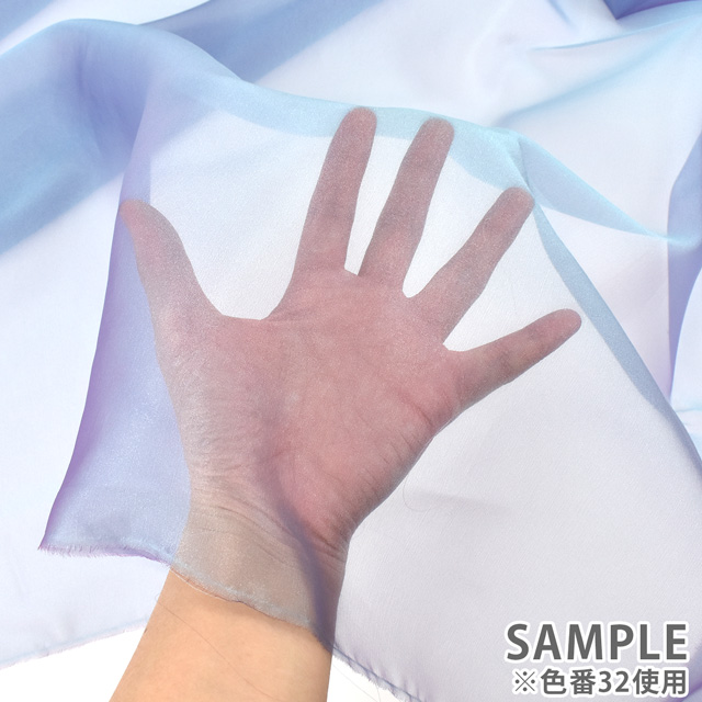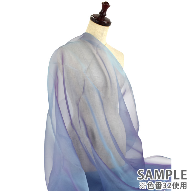 20デニール分繊糸を使用し、ほどよいハリ感がある生地なので、フワリとしたドレスや衣装、装飾、小物やディスプレイまで幅広くお使いいただけます。