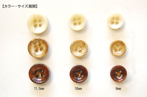ボタンのサイズは3種類、シンプルなデザインなので様々な衣服にご利用頂けます。