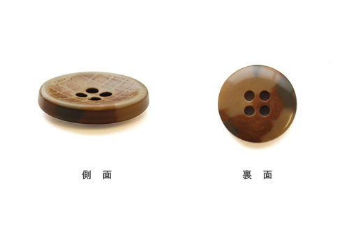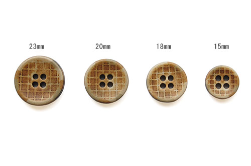 迷彩柄をベースに格子の型押しを施した、手の込んだデザインのボタンです。