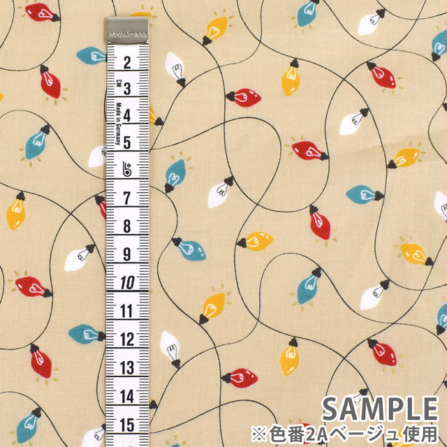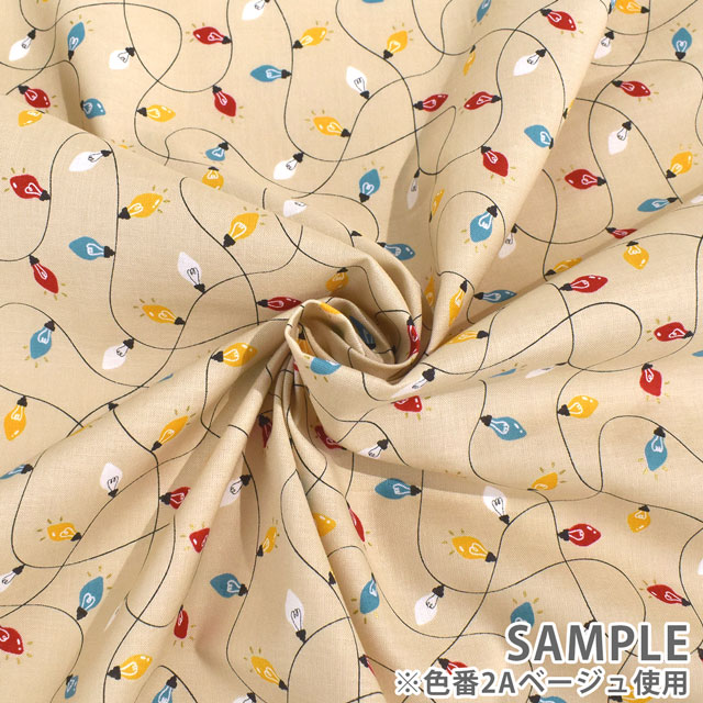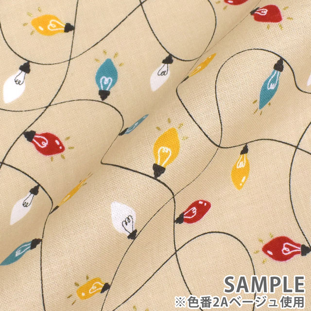 クリスマスに使いやすいイルミネーションが、ゴールドのラメでプリントされた生地です。